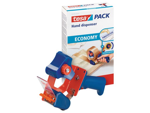 tesa 6300 Economy handhållare har ett lättanvänt och ergonomiskt grepp, en fullt justerbar sträckkontroll samt en gummirulle för enkel användning med alla vanliga typer av förpackningstejp. Med ett skyddande knivhölje för att undvika skador när den inte används. Hållaren har en stadig metallram och en vass kniv med utbytbart blad samt plasthölje för att skydda dig från skador. Den har även en flexibel tejptryckande trasa och ett gjutet plasthandtag som passar bekvämt i handen. Hållaren kan användas med tejprullar med en maxbredd på 50mm och en maxlängd på 66m.