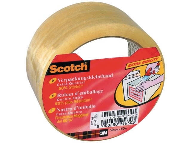 Den här extra hållbara packtejpen från Scotch har tyst upplindning och passar till lätta och medeltunga paket. Den är lätt att linda upp och kompatibel med de flesta hållare, vilket ger extra effektiv användning och bekvämlighet. Den här tejpen är idealisk för försegling av lätta till medeltunga paket. Tillverkningen är certifierad enligt BRC Global Standard för förpackning och förpackningsmaterial.
