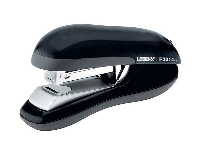 Rapid F30 är en ergonomisk och effektiv häftapparat för skrivbordet med Flat Clinch-teknik för prydligare häftning och 30 % plattare pappersstaplar. Flat Clinch-tekniken hos Rapid F30 Stapler garanterar att klamrarnas baksida plattas ut när häftapparaten tränger igenom pappret, vilket gör pappersbuntar 30 % plattare. Den starka stålkonstruktionen gör häftapparaten hållbar både i hemmet och på kontoret. Den här häftapparaten är gjord för frekvent användning och häftar upp till 30 pappersark samtidigt.