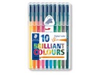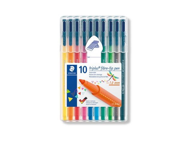 STAEDTLER Triplus® penna med fiberspets innehåller vattenbaserat bläck i en klar färg som enkelt kan tvättas bort från de flesta textilierna.