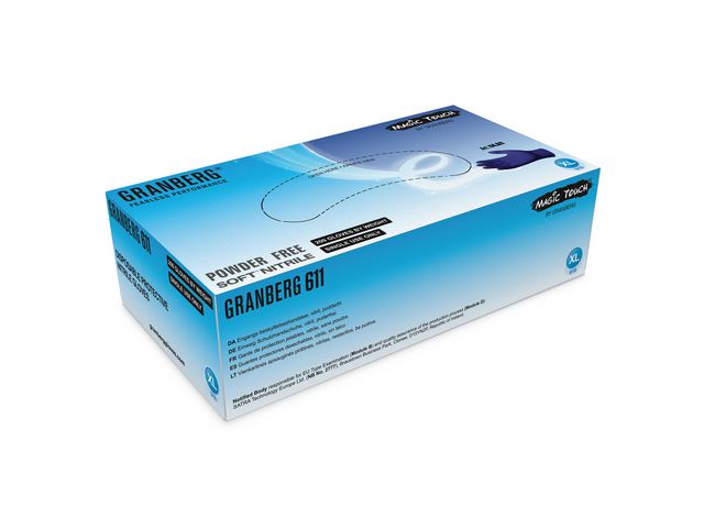 Engångshandskar av lättviktsnitril vilket gör dem extra tunna och elastiska. Godkända för användning i direkt kontakt med alla typer av livsmedel, inklusive livsmedel med hög fetthalt (EN 1186). Puderfria engångshandskar med god fingerkänsla. Med mikroruggad ytstryktur på fingertopparna för bättre grepp. Handskarna är ett bra alternativ till engångshandskar i vinyl. Ej medicinskt godkända. Lämpliga för arbete inom HoReCa, livsmedelsindustri, butik, samt rengöring utan kemikalier: Livsmedelsindustri Fastighetsskötsel Detaljhandel