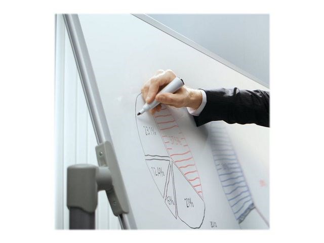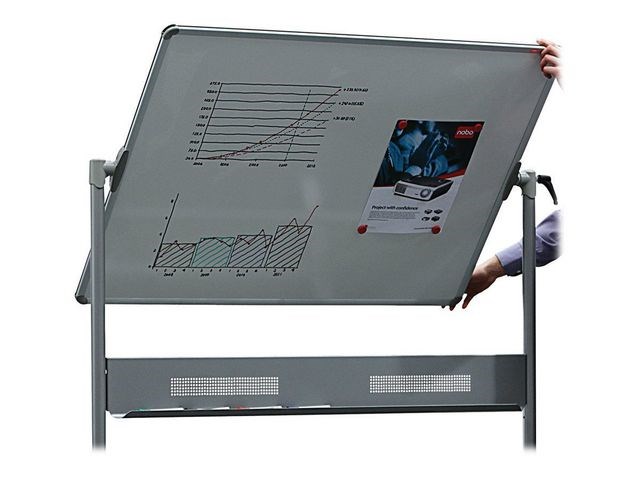 Den klassiska mobila magnetiska whiteboardtavlan från Nobo® med lackerad,glansig stålyta har hjul som gör att tavlan kan flyttas mellan olika mötesrum. Den är en modern och effektiv lösning för att gemensamt samla idéer inom team och grupper. Den klassiska mobila magnetiska whiteboardtavlan från Nobo® med lackerad stålyta har hjul som ger enkel användning och rörlighet. En begränsad väggyta är inte längre något problem eftersom den här stora whiteboardtavlan kan rullas och flyttas mellan olika rum. Dessutom är det enkelt att rengöra eller radera anteckningar som har gjorts med teamet på den här whiteboardtavlans magnetiska lackerade stålyta. Den här mobila whiteboardtavlan kan också användas mer effektivt tack vare att den är dubbelsidig med en horisontell vridmekanism. Den här klassiska mobila magnetiska whiteboardtavlan från Nobo® med lackerad stålyta är modern och stor, och levereras med ett stort pennfack. Den är ett smart sätt att anteckna gemensamma tankar och bygga smarta idéer.