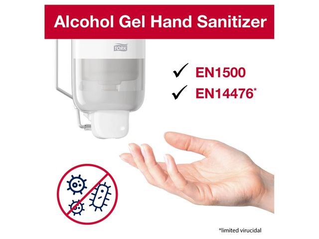En effektiv återfuktande handdesinfektionsgel med 70% alkohol. Handdesinfektionsgel för handrengöring när tvål och vatten inte finns tillgängligt, eller som komplement för extra säker hygien. Regelbunden handtvätt och användning av handsprit är mycket viktigt för att förhindra smittspridningen. Effektiv formula uppfyller kraven i EN 1500 och EN 14476. Finns även som fristående pumpflaska (500 ml). Passar till Tork dispenser S1.