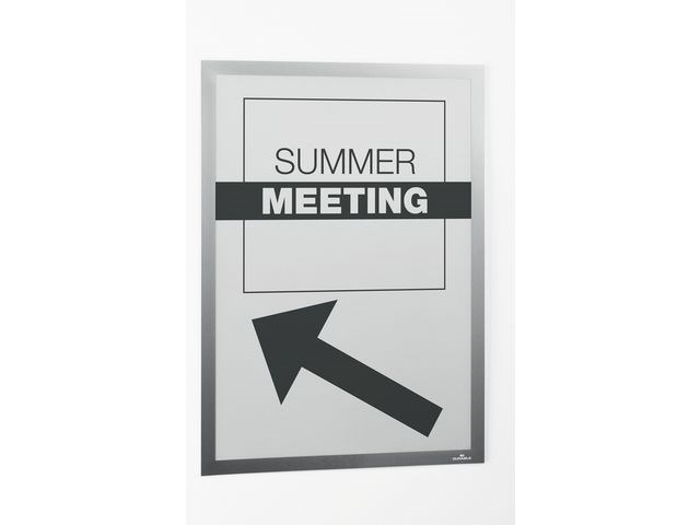 - till att visa information och orienteringsskyltar i A3 format. Ser proffsigare och snyggare ut än att sätta upp informationen med tejp. Den öppningsbara ramen med magnetstängning gör det lätt att sätta in och byta budskap. Ramen kan sättas upp på tapet, trä och flertalet plastytor med de medföljande klisterremsorna. Vid borttagning släpper klisterremsorna från underlaget när de dras bort (enligt instruktionen på ramen) utan att efterlämna märken. En extra uppsättning med fyra klisterremsor medföljer och fler kan köpas separat. Tillverkad av PVC.