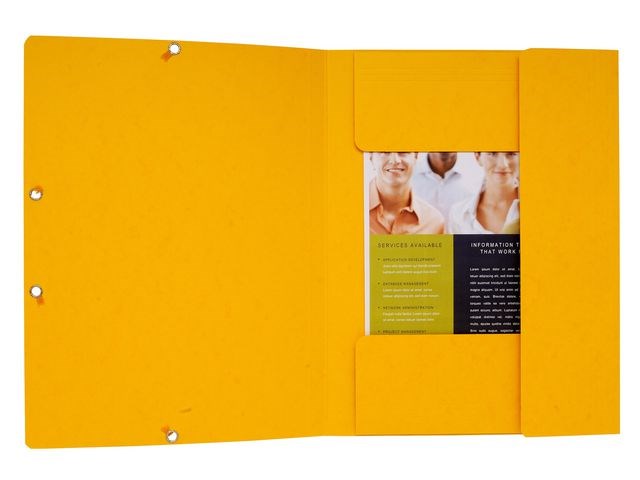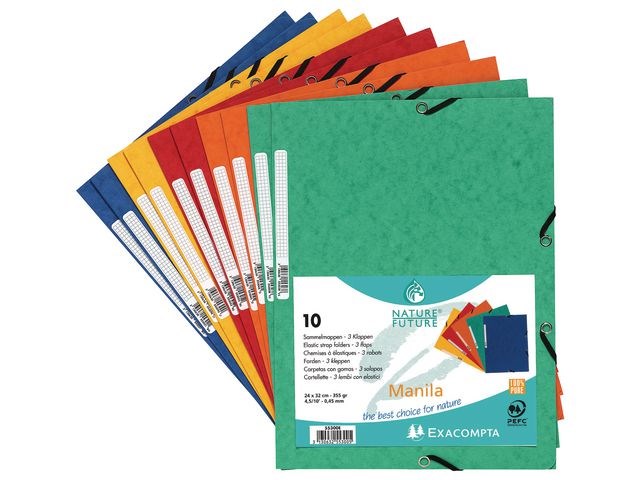 Exacompta Nature Future® 3-klaffmappen med elastisk stängning är tillverkad av miljövänligare presspan och håller dina papper säkert på plats. Exacompta Nature Future® 3-klaffmappen med elastisk stängning rymmer upp till 250 A4-ark och har gott om förvaringsutrymme för dina dokument. Med 3 klaffar på insidan och 2 gummiband på utsidan håller den innehållet på plats. Du kan namnge mappen på etiketten på ryggen. Den här mappen är tillverkad av hållbart producerad 400 g/m² FSC®-certifierad hårdglaserad presspan och är en högkvalitativ, miljövänligare och tålig lösning för dina arkiveringsbehov.