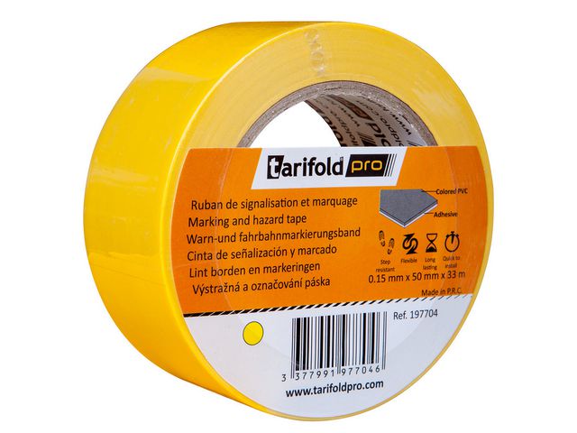 Golvmarkering på rulle hjälper dig att organisera din arbetsplats. Perfekt för märkning av riskområden, pallplatser, gångbanor etc. Markeringstejpen är tillverkad av hållbar vinyl för att kunna motstå dagligt slitage från både männsikor och maskiner. Tejpen är enkel att sätta på plats med långvarigt fäste (optimerat efter 48h). Vinylen är resistent mot kemikalier, fukt, upprepat slitage. Enkel att rengöra med vanliga rengöringsmedel. Lätt att ta bort.