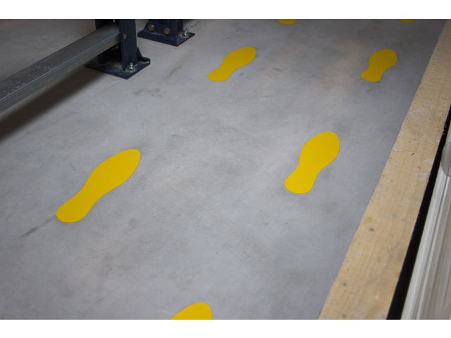 Golvmarkering i form av en fot hjälper dig att organisera din arbetsplats. Perfekt för märkning av riskområden, pallplatser, gångbanor etc. Markeringstejpen är tillverkad av hållbar vinyl för att kunna motstå dagligt slitage från både männsikor och maskiner. Tejpen är enkel att sätta på plats med långvarigt fäste (optimerat efter 48h). Vinylen är resistent mot kemikalier, fukt, upprepat slitage. Enkel att rengöra med vanliga rengöringsmedel. Lätt att ta bort.