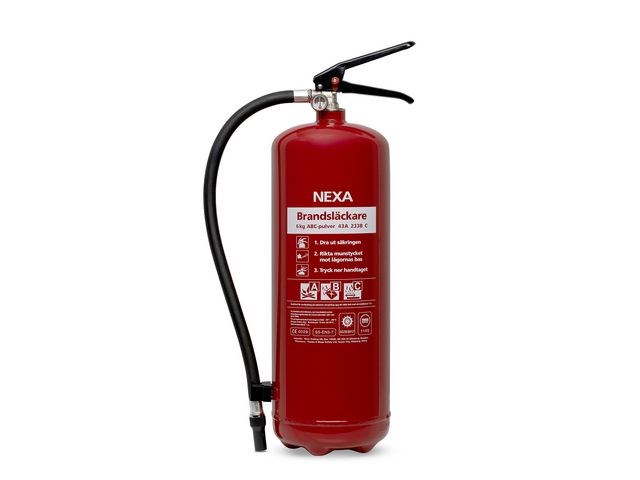 Tryckladdad pulversläckare ifrån NEXA som passar perfekt i offentliga miljöer och i hemmet. Nexas 6kg ABC- pulversläckare (PG-6) uppfyller alla krav enligt standarden EN-3 och är certifierad av DNV och Wheelmark. Pulversläckare anses vara den mest mångsidiga släckaren för hushåll, och släcker de flesta bränder som kan uppstå. Pulversläckare rekommenderas av MSB (Myndigheten för Säkerhet och Beredskap) och Brandmyndigheten.