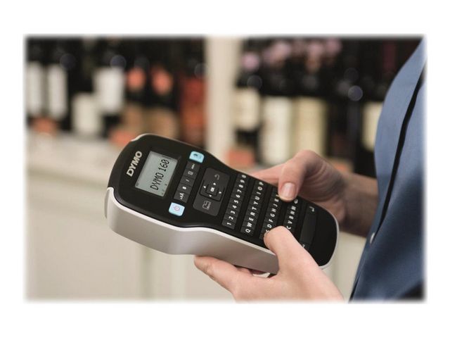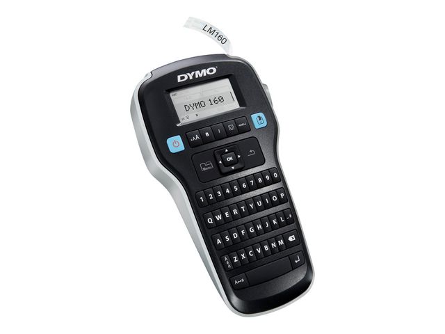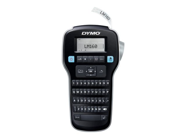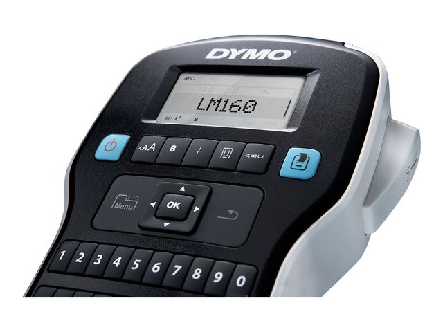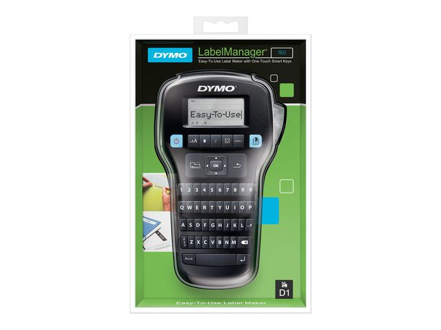 Med den lättanvända bärbara LabelManagerT 160 från DYMO® kan du skriva ut etiketter som du alltid velat ha dem. LabelManagerT märkmaskin gör det enkelt att organisera och ger högkvalitativa resultat. Märkmaskinen LabelManagerT 160 från DYMO® är en handhållen och fristående enhet. Med 288 symboler och ett Clip Art-bibliotek kan du ge dina etiketter ett mångsidigt och professionellt utseende. Den grafiska skärmen på LabelManagerT 160 från DYMO® ger en tydlig bild av hur din etikett kommer att skrivas ut. Du behöver inte gissa dig till hur etiketten kommer att se ut. Enheten kan spara senast utskrivna etikett och skriva ut den igen med en knapptryckning. Enheten använder färdigförpackade D1-tejprullar med termisk överföring med maximalt 12 mm bredd som finns i permanenta och icke-permanenta material. Produkten är CE-märkt.