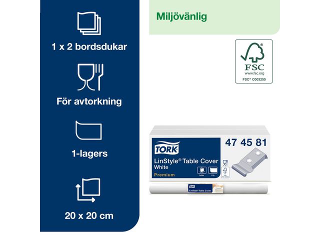 Höj dukningen till en ny nivå med denna kvalitetsengångsduk i linnestil! Tork LinStyle(®) bordsdukar på rulle i premiumkvalitet passar på restauranger med fullbetjäning, där det är extra viktigt att göra ett gott intryck på gäs... Läs mer