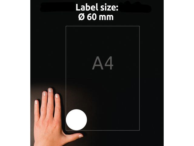 Avtagbara universaletiketter för inomhusbruk. Med dessa avtagbara runda produktetiketter kan du enkelt märka dina produkter tillfälligt och vara säker på att etiketterna kan tas bort utan att lämna limrester. De fäster säkert på många olika ytor, men när dina kunder tar bort dem från den köpta varan lämnar de inga limrester efter sig. Du kan enkelt och helt gratis designa och skriva ut dina Avery-produkter med mjukvaran Design & Print, som innehåller mallar, grafik och designmöjligheter. Du hittar den på avery.se/programvara.