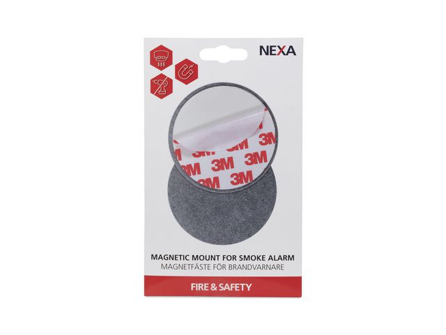 Magnetfäste med självhäftande tejp för snabb och enkel montering av brandvarnare utan verktyg. Montera ena plattan i taket och den andra på brandvarnaren. Passar brandvarnare med minst 70 mm i diameter. Endast för montering i tak.