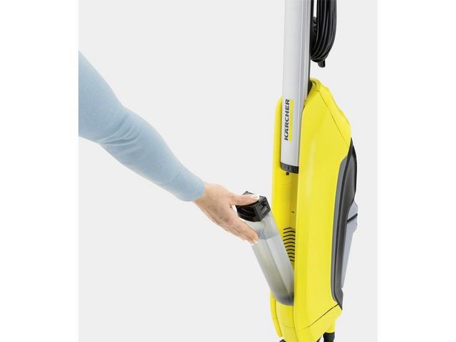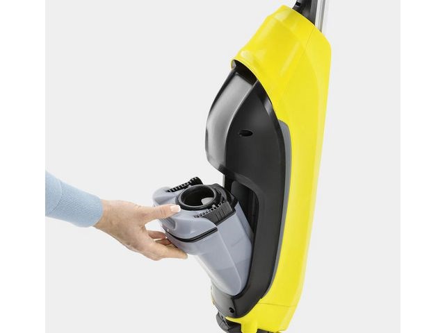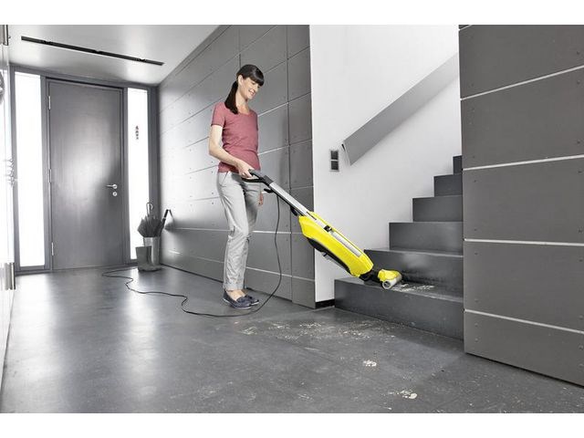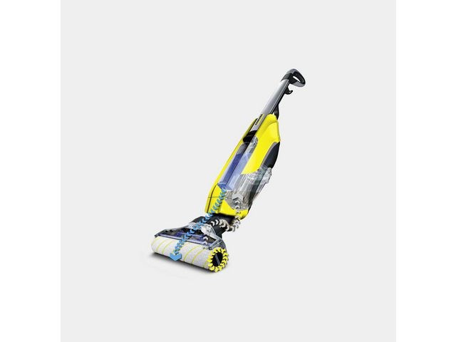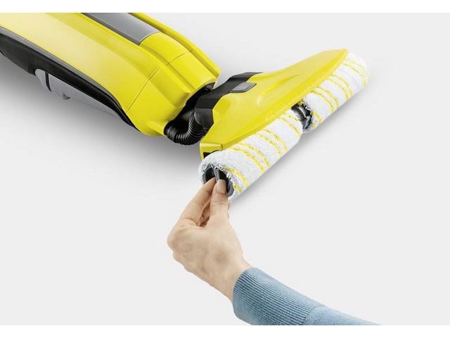 FC 5 Improved med rullar av mikrofiber har en 2-i-1-funktion som gör att du kan våttorka och rengöra alla hårda standardgolv från smuts i ett enda svep. Golvvårdsmaskin Kärcher FC 5 Improved har tack vare det nya sughuvudet med bredare luftkanal och integrerad trådlyftare, blivit ännu bättre på att suga upp hundhår och långa hårstrån. Den är utrustad med en självrengöringsfunktion som betyder att den rengör kontinuerligt valsarna för bästa rengöringsresultat. Mikrofibervalsarna är tvättbara i maskin upp till 60°C. Golven torkar på mindre än 2 minuter, tack vare den låga halten kvarvarande fukt.