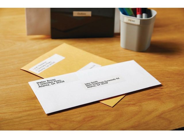 Dymo LabelWriter adressetiketter i standardutförande har en permanent självhäftande baksida som enkelt kan avlägsnas från underlaget. DYMO® LabelWriterT adressetiketter i standardutförande ger snygga, skräddarsydda etiketter på 89 x 28 mm som är perfekta för långa adresser, filhantering och organisation i hemmet eller på kontoret. LabelWriterT-etiketter ger högkvalitativa utskrifter med maximal prestanda. Varje etikett dras enkelt av utan att lämna limrester och kan vid behov skrivas ut en i taget så att du undviker spill och trassel. Tack vare termisk överföringsteknik behövs varken bläck eller toner vid utskrift. Förpackningen innehåller 24 rullar med 130 etiketter, vilket ger en kostnadseffektiv lösning för dina märkningsbehov.