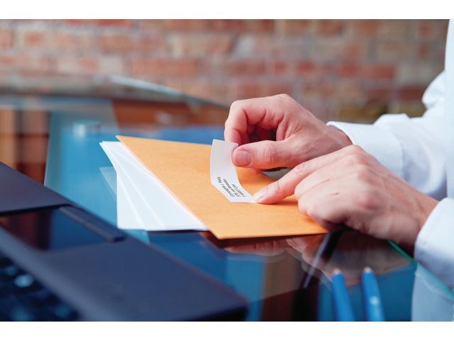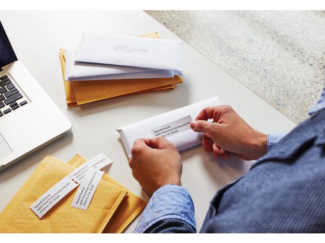 De stora DYMO® LabelWriterT-adressetiketterna ger snygga, anpassade etiketter i större storlek, 89 x 36 mm, som är perfekta för långa adresser, filhantering och för att organisera hemma och på kontoret. Dymo LabelWriter vita adressetiketter i storleken 36x89 mm. Permanenthäftande.