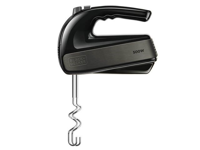 En kraftfull, lättanvänd elvisp för att slå, vispa, blanda en knåda en mängd olika ingredienser. BLACK+DECKER Elvisp 500W är en mångsidig mixer med 5 hastigheter plus kraftfull turbofunktion. De två medföljande degkrokarna och visparna är lätta att byta och ta bort för rengöring. Den har ett Anti-fingeravtryck hölje i rostfritt stål finish. - Effekt: 500W