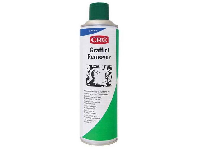 Graffitiborttagning CRC aerosol 400ml tar bort alla spår av färg och bläck. Graffitiborttagningen ifrån CRC löser upp och lossar oönskad färg och bläck från aerosoler, pennor och märkpennor. Den är säker att använda på de flesta underlag men testa före applicering i tveksamma fall. Förhindrar att originalytan skadas på grund av kraftigt skrapande. Lämnar inga sura eller alkaliska rester som skulle inverka skadligt på betong, cement och murbruk. Effektiv på ett stort antal färger, speciellt om de inte har torkat helt. - Volym: 400 ml