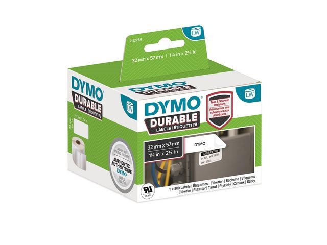När du konfronteras med utmanande ytor, använd etiketter som är starkare och håller längre än pappersetiketter. Dymo Durable medium multi-purpose label för LabelWriter, 57x32mm, 800 etiketter, extra starkt lim, vit. Dymo LabelWriter Durable labels har industri-graderat lim och en tuffare yta som motstår upprivningar och avskavningar som uppstår vid värme, fukt och lösningar. Dymos LabelWriter Durable Labels är perfekta för hyllor, golvmarkeringar, lagring av kemiska vätskor och mer.