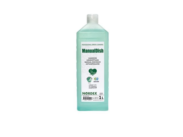 Nordex Green är en serie Cradle to Cradle certifierade rengöringsmedel som har en minimal påverkan på miljön under hela livscykel. ManualDish är ett koncentrerat handdiskmedel för en daglig cirkulär handdisk med låg dos som löser upp fett effektivt och ger ett glänsande rent resultat på alla diskgods. Kan även användas för lättare rengöring. Angenämt parfymerad. Nordex Green är en serie Cradle to Cradle certifierade rengöringsmedel som har en minimal påverkan på miljön under hela livscykel. Baserade på ingredienser som är biologiskt nedbrytbara och växtbaserade. Cradle to Cradle står för ett nytt koncept med ett omfattande program för designen av produkter med avseende på användning av material och tillverkning. Programmet utvärderar en produkts säkerhet för människor, miljön och designen för framtida livscykler. Samt fokuserar på att använda säkra material som kan återvinnas som tekniska näringsämnen eller komposteras som biologiska näringsämnen.