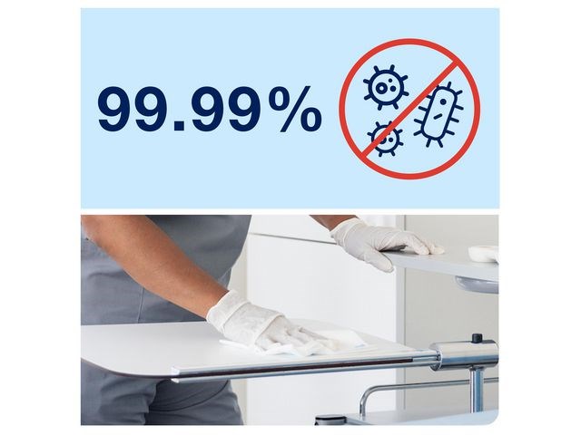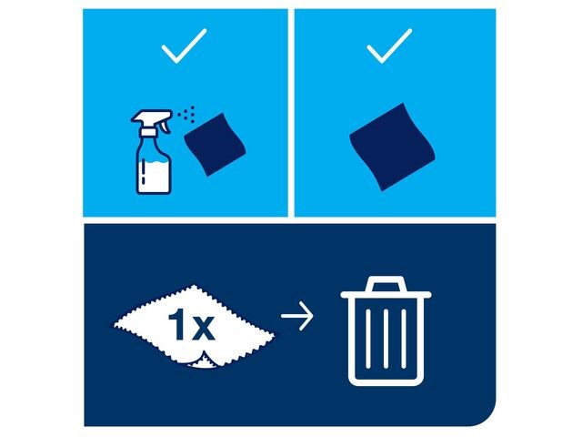 - Använd med vatten för att torka bort 99,99 % av mikroorganismer