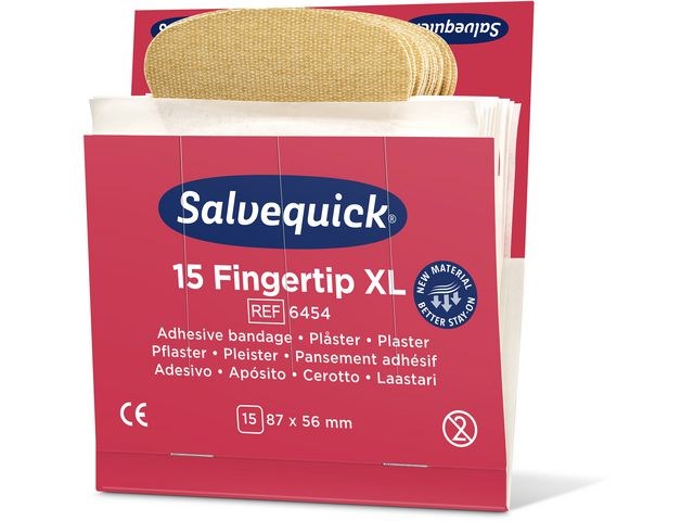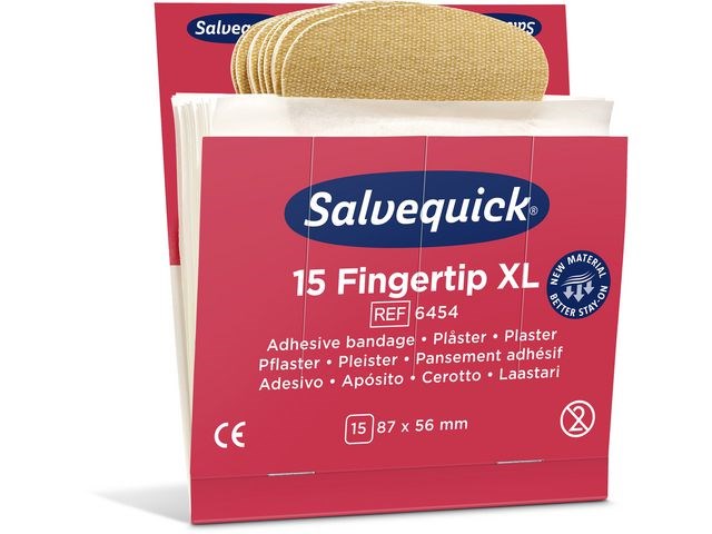 Refill till Cederroth plåsterautomat. Salvequick Extra Stora Fingertoppsplåster är smidiga textilplåster för fingerskador. Plåstren är allergitestade. De är lätta att applicera, flexibla och smidiga att använda.