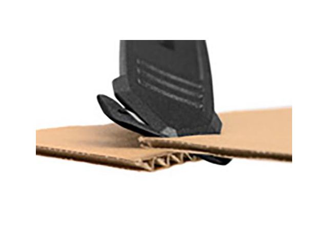 SECUMAX 145 är en smart och kompakt säkerhetskniv för lite enklare skäruppgifter. Det glasfiberförstärkta plasthandtaget och det 0,5 mm starka bladet ger det en anmärkningsvärd robusthet. De två skäreggarna är säkert dolda för att skydda fingrarna. Bladhuvudet har två funktioner: skärning och piercing. Använd knivens näsor till vänster och höger om bladet för att t.ex. genomborra lättare material och bladhuvudets hörn för tillplattning av tejp. OBS! Ej utbytbart blad. Kniven fungerar bra till enklare material så som enskiktskartong, film och förpackningstejp. Tips: håll bladet i en vinkel för att förbättra skärningen!