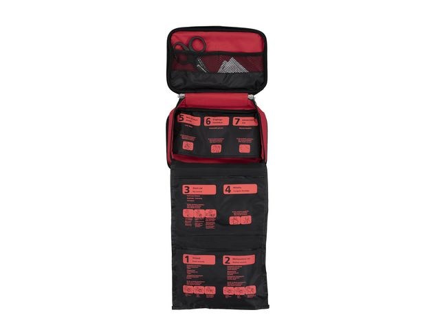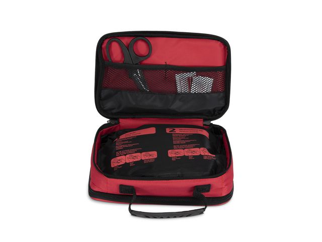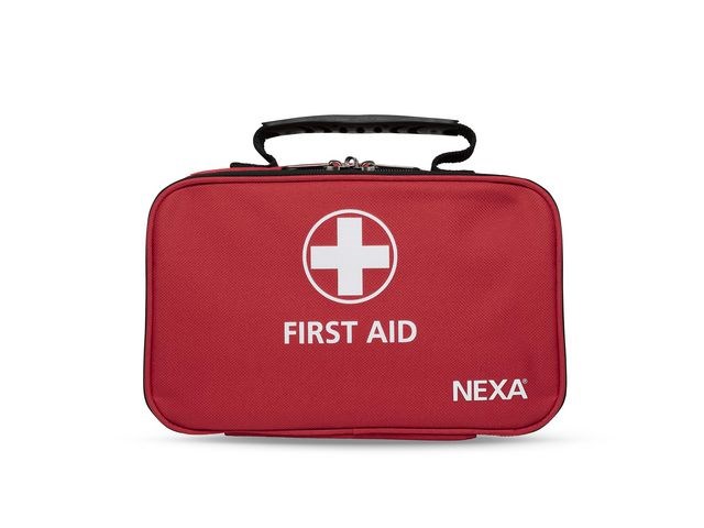 Första hjälpen väska från NEXA när olyckan är framme. En komplett första hjälpen väska som innehåller 61 delar för att hantera allt från småsår till lite större sår, tryckförband samt gel för mindre brännsår, sax, pincett och engångshandskar, mun-mot-mun-mask, mitella m.m. Plats finns även för eget apotek. Produkten är CE-märkt. Innehåller: Engångshandskar Mun till mun mask Mitella Räddningsfilt Burngel Pincett Sax (stor) Säkerhetsnålar Små sår (sårtvätt, sterila kompresser och plåster) Mellanstora sår (sårtvätt, sterila kompresser och sterilt förband) Stort sår (sterilt stort förband)