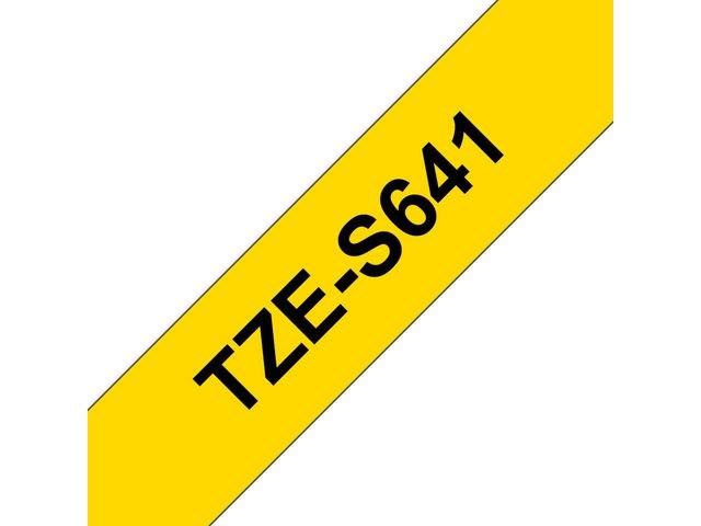 TZeS641 etikettape är kompatibel med flera Brother P-touch-märkmaskiner. Den laminerade etikettapen är mångsidigt tack vare den lättlästa färgkombinationen svart och gul. Etiketterna är praktiska såväl hemma som på jobbet, liksom i andra sammanhang.