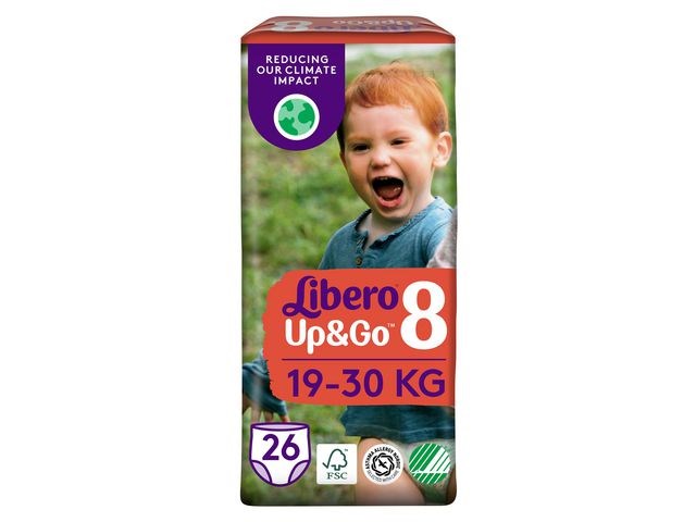 Byxblöja för barn som är uppe och rör på sig mycket. En större byxblöja för barn som aldrig slutar leka. En liten utforskare behöver en säker, flexibel och framförallt bekväm blöja. Libero UP&GO storlek 8, med sina stretchresårer, formar sig efter barnens lår och mage. Även när ditt barn har fullt med spring i benen kommer de mjuka barriärerna förhindra läckage och den otroligt absorberande kärnan ä kommer att hjälpa till att hålla ditt barns hud härligt mjuk, även efter en dag fylld av lek och bus. När ditt barn är mellan 19-30 kg ger blöjan en härlig rörelsefrihet. Blöjan är superenkel att ta av och på. Du river bara upp sidorna och rullar ihop den till ett paket.