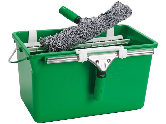 Startkit fönsterputsning, komplett med det som behövs för att rengöra fönster. Innehåller hink, pälshållare, tvättpäls, handtag, skena med gummi.