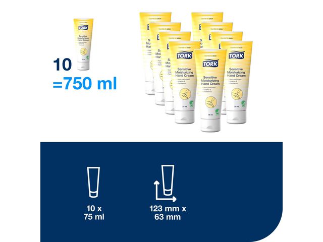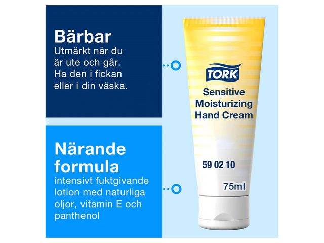 Oparfymerad handkräm som absorberas snabbt för att mjuk hud och långvarig återfuktning. Tork handkräm är idealisk för känslig, extra torr och irriterad hud. En oparfymerad kräm som ger långvarig lindring och minskar stram hud. Intensiv återfuktande kräm med naturliga oljor, vitamin E och Panthenol. Ta hand om händerna även när du är på språng, tack vare tubens storlek.