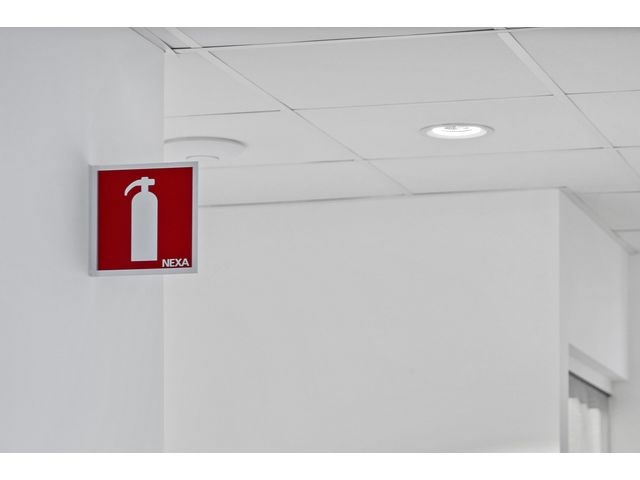 Dubbelsidig skylt som används för att visa placering av brandsläckare. Skylten ska placeras i anslutning till brandskyddsutrustningen, i lämplig höjd och se till att den syns tydligt och inte är blockerad. Skylten är gjord i hårdplast och monteras på väggen med dubbelhäftande tejp (ingår ej) eller vägghängare. Produkten är CE-märkt.