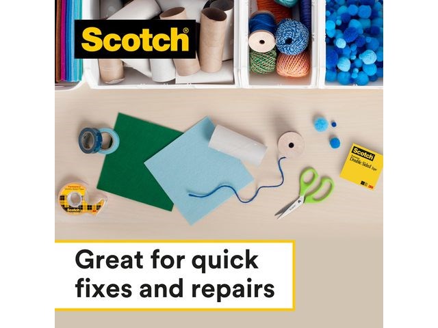 Ett kladdfritt alternativ till lim! Praktisk dubbelhäftande tejp. Scotch® dubbelhäftande tejp har fotosäkert, permanent häftämne på båda sidor, perfekt för att fästa lättare material. Inga droppar eller luftbubblor som med lim