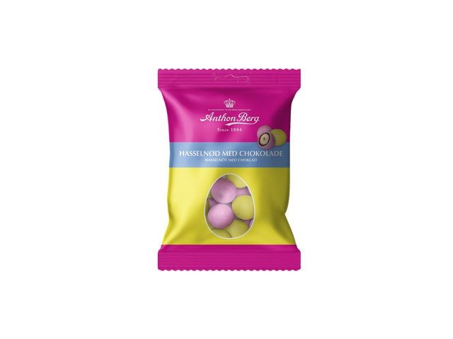 En lyxig chokladupplevelse från Anthon Berg. En påse goda Anthon Berg hasselnötter med choklad, innehåller rostade hasselnötter med mjölkchoklad och sockerdragé. Anthon Berg är ett världsberömt danskt chokladmärke grundat i Köpenhamn 1884. - 80 gram