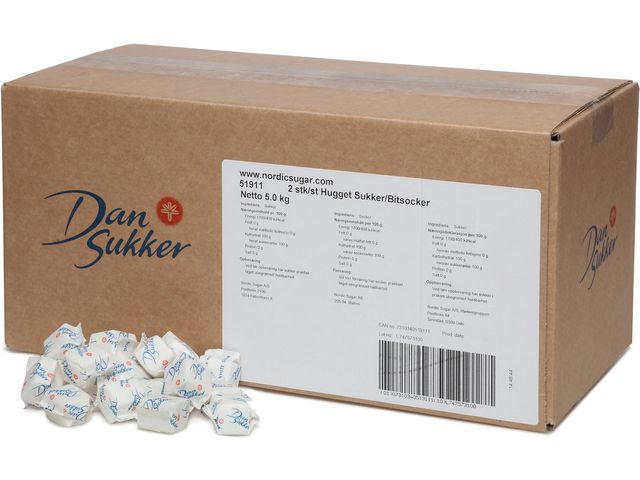Sockerbitar i 2-pack som kommer i en stor kartong om 4,4 kg. Snabbitsocker innehåller sockerbitar 6,2g/2 st. Ingredienser: Socker. Näringsvärden: per 100 Gram energi 1700 kJ energi 400 kcal fett 0 g