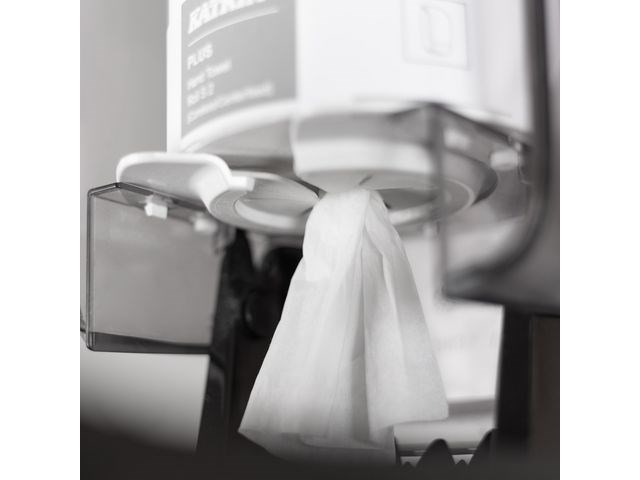Centrummatad dispenser för torkrulle, kompakt design för smart och effektiv torkning av både ytor och händer. Dispenserlösning för torkpapper, perfekt för avtorkning och rengöring av ytor Enkel avrivning, räcker med endast en hand. Återvunnen plast i dispensernTransparant bakstycke