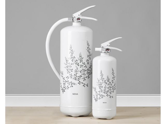 Brandsläckare i vitt från Nexas Design Line. Nexas brandsläckare lämplig i villan, lägenheten, sommarstugan, husvagnen, husbilen, båten etc. Effektivitetsklass 43A 233B C. Tryckladdad pulversläckare, torrt kemikaliskt pulver. Produkten är CE-märkt. Kontrollera regelbundet manometern, minst 1 ggr/år.