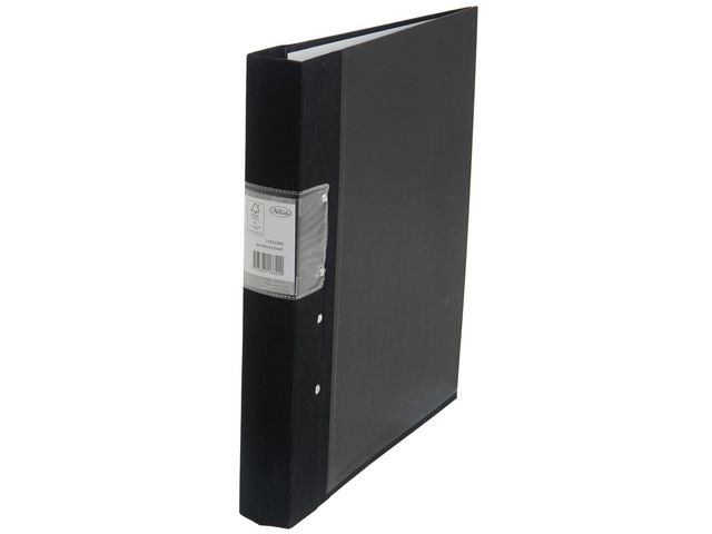 FSC-märkt svart träryggspärm med svart tygklädd rygg MDF-skiva för en mer stabil och stadig pärm. MDF-skivan är tillverkad av minst 30% återvunnet trä. Hög mekanisk kvalitet med ergonomisk trycknapp och
