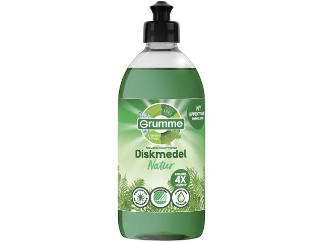 Grumme diskmedel rengör snabbt och är effektivt mot tuff och envis smuts. Formuleringen har en härlig doft av natur som effektivt tar bort dålig lukt från fisk, vitlök och matrester, både från din disk och disktrasa. Innehåller inga animaliska ingredienser. Dermatologiskt testad på känslig hud. Disktips: Diska inte under rinnande vatten. Använd diskhon så sparar du vatten och energi. Har kastrullen intorkade matrester? Blötlägg den med lite Grumme diskmedel så blir den skinande ren. Diskmedel passar även bra för rengöring av fönster och speglar. Droppa lite diskmedel i en hink med varmt vatten, tvätta och torka av.