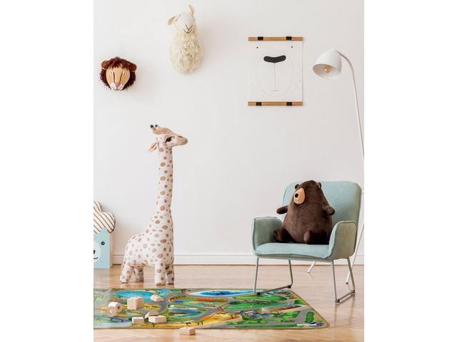 Lekmatta tjock och mycket mjuk kvalite med gummerad undersida för att ligga stadigt på golvet. Mattan hjälper barnet att utveckla sin fantasi och motorik.