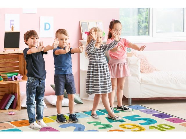 Samlingsmatta med bokstäverna A-Z och siffrorna 1-10 i glada färger. Pedagogisk matta där barnen på ett aktivt sätt kan lära sig känna igen bokstäverna,