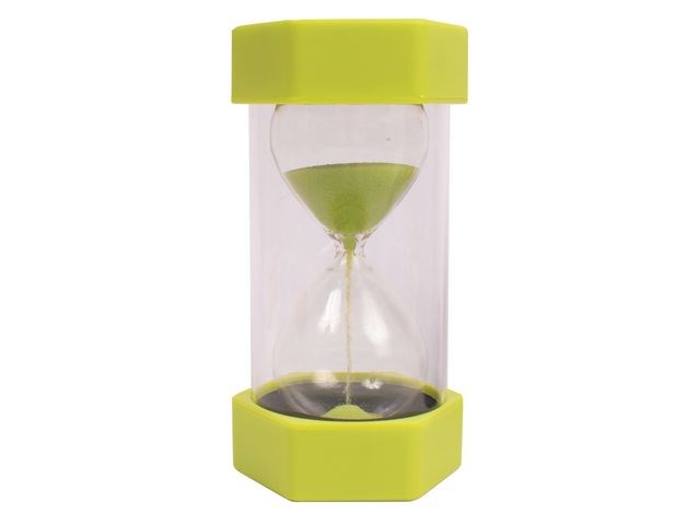 Stort timglas 1 min, grön. Perfekt verktyg för att konkretisera tiden och tidsbegreppet för barn. Genom att erbjuda en visuell indikation av den återstående tiden hjälper det till att skapa en djupare tidsuppfattning. Lätthanterliga och smidiga att använda i inlärningsmiljöer. Bra för experiment, tidtagning, spel och lek. - Mått: 16cm