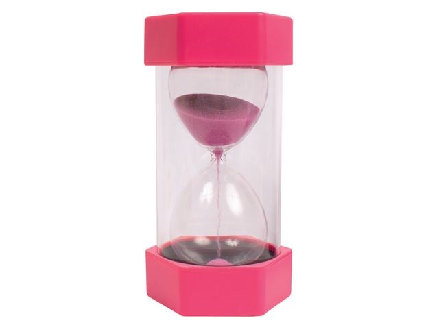 Stort timglas 2 min, rosa. Perfekt verktyg för att konkretisera tiden och tidsbegreppet för barn. Genom att erbjuda en visuell indikation av den återstående tiden hjälper det till att skapa en djupare tidsuppfattning. Lätthanterliga och smidiga att använda i inlärningsmiljöer. Bra för experiment, tidtagning, spel och lek. - Mått: 16cm