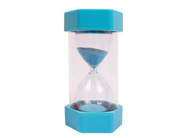 Stort timglas 20 min, ljusblå. Perfekt verktyg för att konkretisera tiden och tidsbegreppet för barn. Genom att erbjuda en visuell indikation av den återstående tiden hjälper det till att skapa en djupare tidsuppfattning. Lätthanterliga och smidiga att använda i inlärningsmiljöer. Bra för experiment, tidtagning, spel och lek. - Mått: 16cm