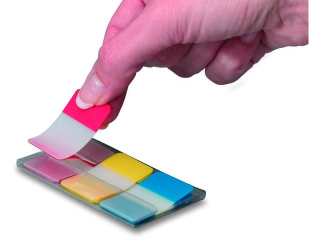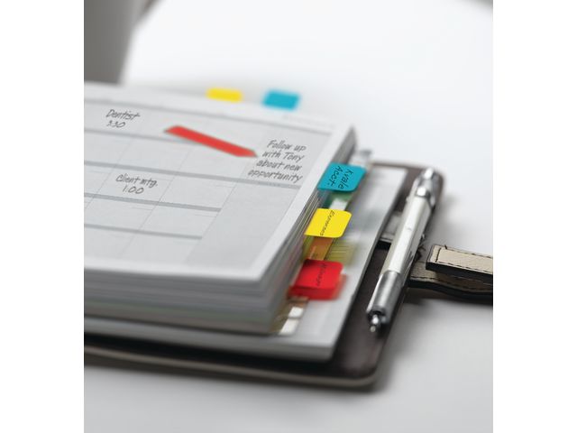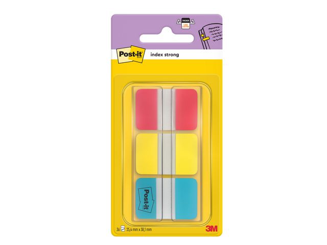 Dessa iögonfallande Post-it® Index Strong arkiveringsflikar är gjorda för att du ska kunna skriva på dem och flytta dem, är tillverkade av hållbar plast och fäster säkert på dokument. Små Post-it® Strong registerflikar är lämpliga för en mängd olika användningsområden, från arkivering av viktiga dokument till sortering av pärmar i organiserade avsnitt och mycket mer. Om du behöver markera ställen på ett tydligt sätt för senare hantering eller separera dina mappar, kommer dessa hållbara, små flikar definitivt att fånga din uppmärksamhet och den transparenta delen täcker inte över texten. Den här praktiska förpackningen levereras i ett urval av klara färger och det finns tillräckligt med plats för att skriva en liten rubrik. Post-it® arkiveringsflikar kan placeras i en anteckningsbok, rapport eller tidskrift. De är ett perfekt hjälpmedel för att färgkoda viktiga dokument för senare referenshantering och levereras i en praktisk kapsel av plast.