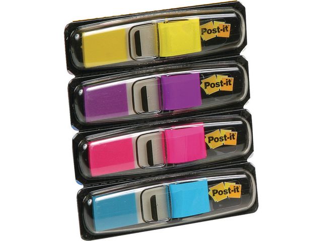 Dessa iögonfallande Post-it®-indexflikar är gjorda för att du ska kunna skriva på dem, fäster säkert i kanten av sidor och levereras i en praktisk plasthållare. Små Post-it®-indexflikar är lämpliga för en rad olika användningsområden, från att märka viktiga sidor i tjocka läroböcker till att markera favoritrecept i kokböcker och mycket mer. Om du behöver markera ställen på ett tydligt sätt för senare hantering, kommer dessa små Post-it®-indexflikar definitivt att fånga din uppmärksamhet. Den här förpackningen levereras i ett urval av klara färger och det finns tillräckligt med plats för att skriva rubriker. De är ett perfekt hjälpmedel för att färgkoda viktiga dokument, kataloger eller mappar för senare referenshantering och levereras i prydliga plasthållare.