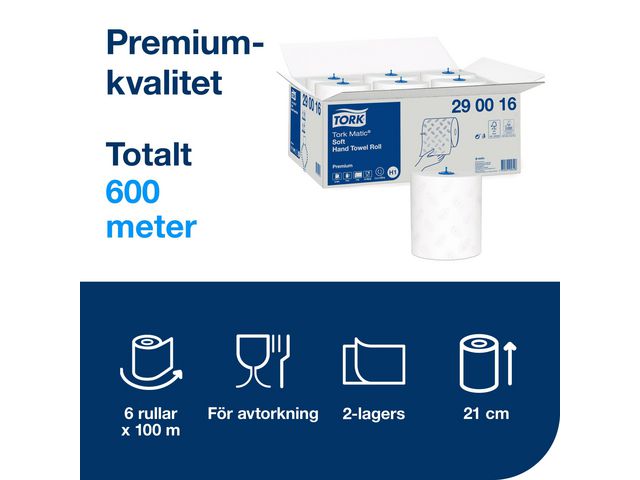 Tork Matic Mjuk handduk på rulle H1 är högabsorberande och våtstark Ge lite extra lyx till dina toalettutrymmen med den mjuka känslan och den mönsterpräglade blå lövdekoren hos dessa pappershanddukar. Gäster kan enkelt och effe... Läs mer