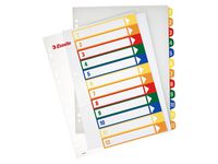 Anpassa och återanvänd Esselte A4+ register med EasyPrint Extra brett register för plastfickor. Färgat plastregister i styv polypropylen. Projekt index skriver man på vanligt papper via en skrivare. Detta papper placeras sedan bakom det transparenta försättsbladet. Till hjälp vi utskrift finns World-mallar som kan laddas hem via Internet. Styvt transparent försättsblad 0,35 mm, registerblad 0 ,30 mm. A4+, 1