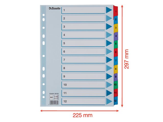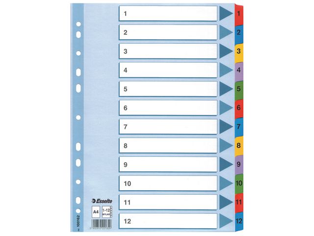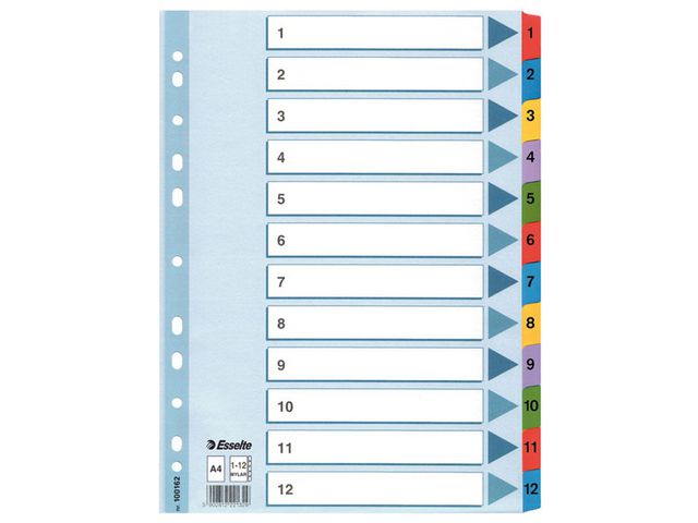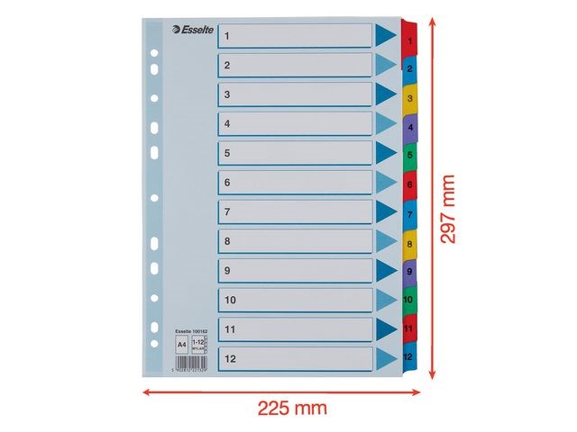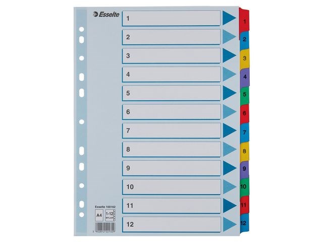 Organisera dina mappar och pappersarbeten med indexavdelarna Mylar® från Esselte® med förtryckta etiketter för enkel identifiering. Indexavdelarna från Esselte® är en utmärkt indexerings- och märkningslösning som organiserar dina personliga och yrkesmässiga material i mappar och pärmar. Omslagsbladet ger tillräckligt med utrymme för att tagga flera avsnitt i mapparna. Det är enkelt att navigera genom mappen för frekvent referenshantering tack vare de förtryckta etiketterna. Arkivremsan är stansad med flera hål som gör den enkel att sätta in i olika typer av mappar och pärmar.