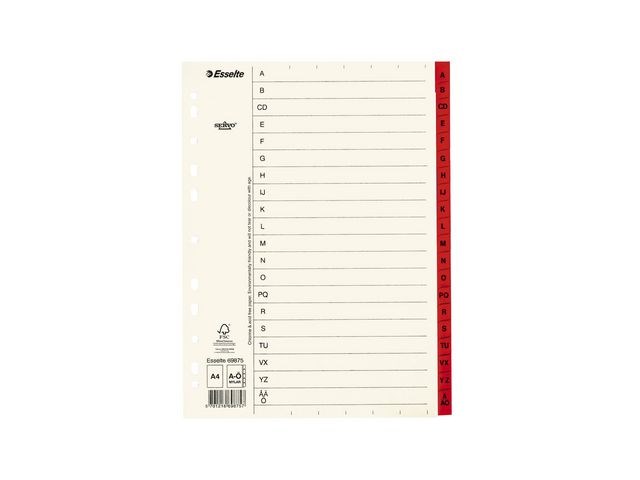 Esselte® Servo-avdelare ger enkel märkning och sortering med 1 förtryckt blad med 11 perforerade hål för universell användning. Esselte Servo-avdelarna är ett viktigt verktyg för organisering och kategorisering av kontors-, skol- och viktiga hemdokument. Varje Esselte Servo-avdelarblad levereras perforerat med 11 hål, vilket gör dem enkla att använda med en mängd mappar och pärmar med dokument. Du kan både skriva och trycka på FSC-certifierade Mylar Esselte Servo-avdelare och de kan skrivas ut med ett vanligt A4-format. Varje Esselte Servo-avdelarblad i kartong levereras förtryckt med 20 tydligt märkta utrymmen.